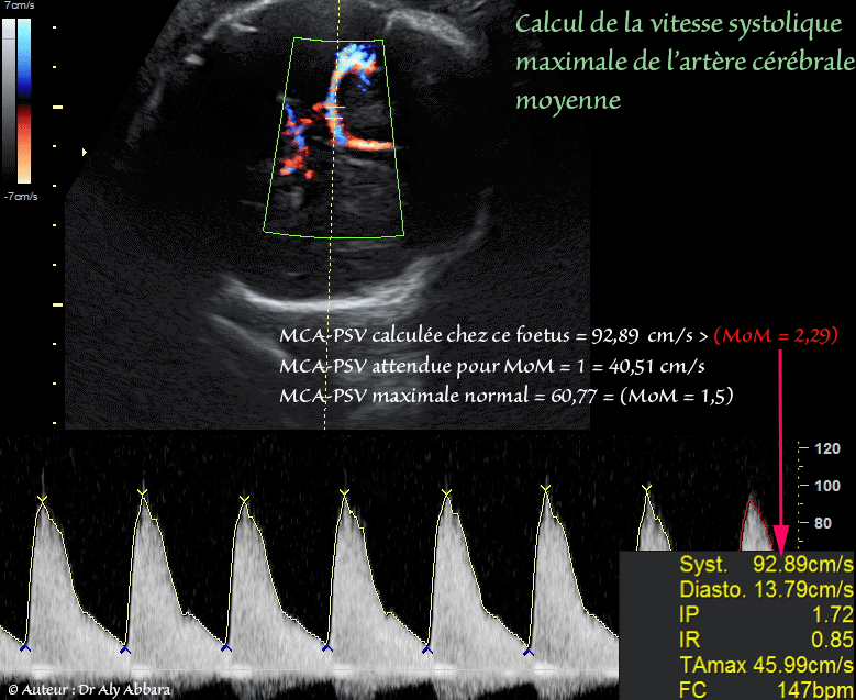 - augmentation de la vitesse systolique maximale au niveau de l'artère cérébrale moyenne (VSMax-ACM) :
