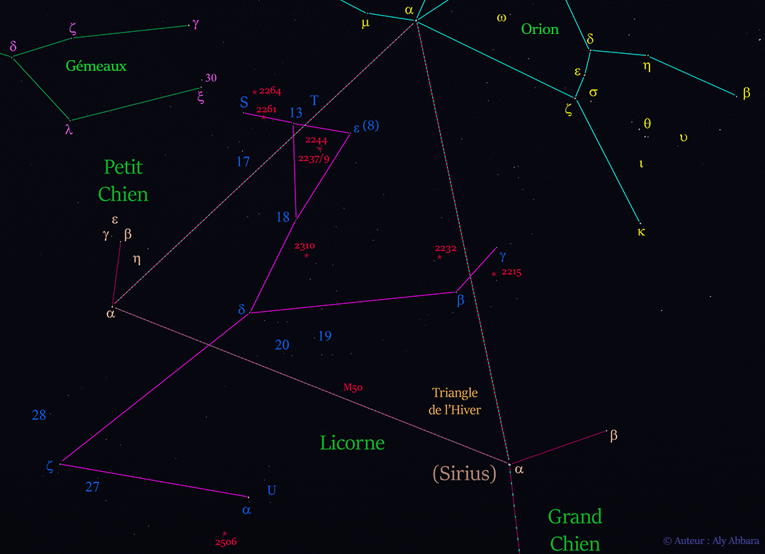La constellation de la Licorne (Monoceros) se situe, en grande partie, au sein de ce triangle.