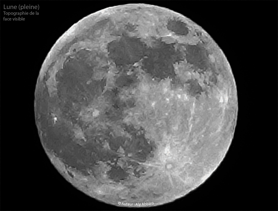 L'albédo de la surface visible de la lune en moyenne est de l'ordre de 0,073. L'albédo des Mers lunaires est seulement de 0,03 contre 0,24 pour la surface de ses continents.