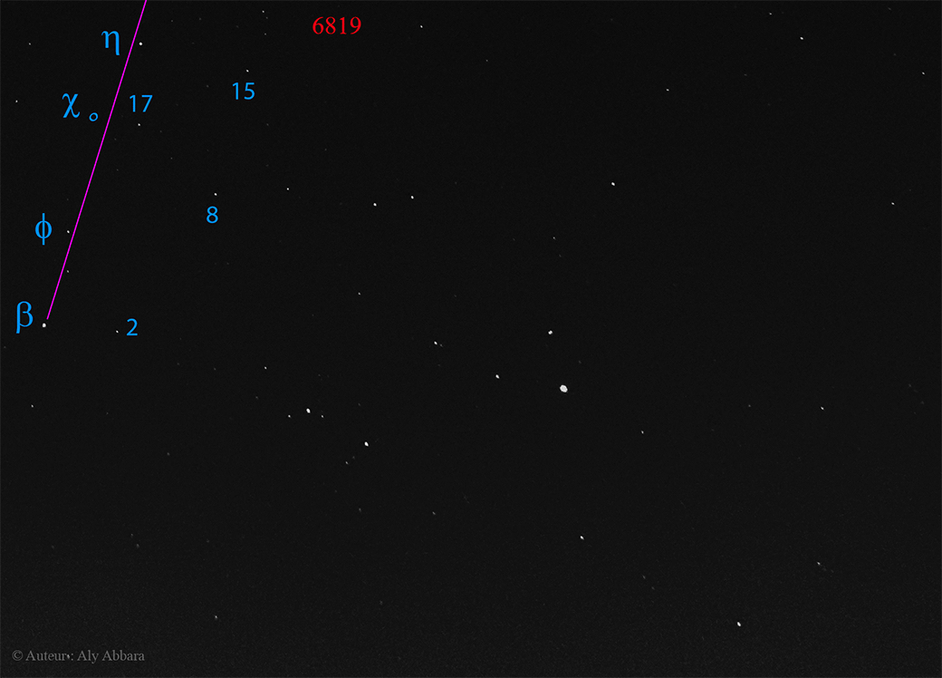 - M 56 : à 33000 al de la Terre. Un amas globulaire de magnitude 8,2 sans cœur brillant.
