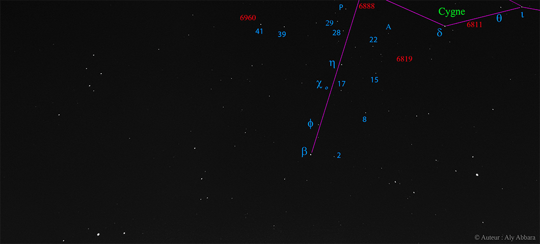 - 13 Vul (13 Vulpeculae) : étoile blanche bleue de magnitude 4,6.