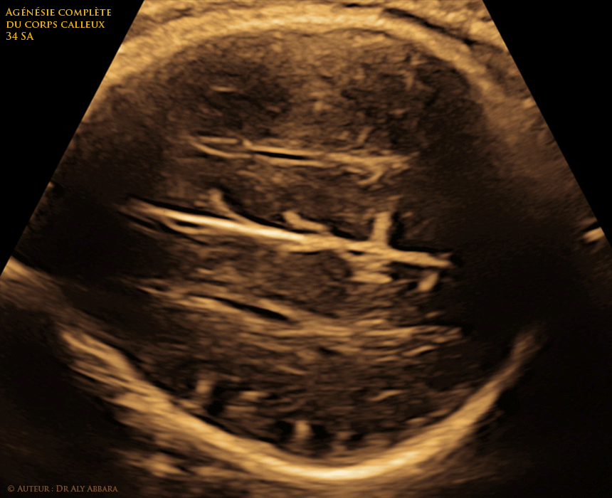 L'absence de cavum du septum pellucidum à l'échographie doit faire suspecter la présence d'une agénésie du corps calleux.
