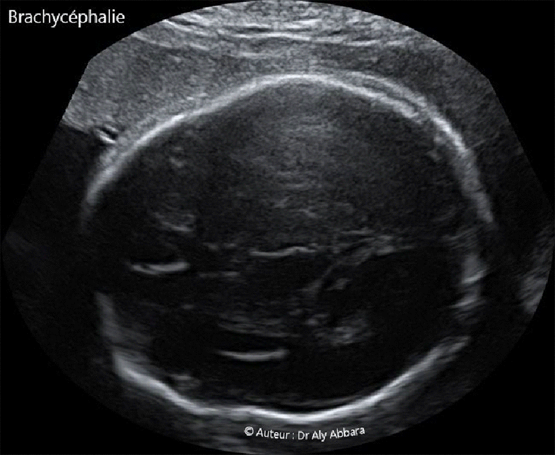 Images échographiques montrant un crâne fœtal brachycéphale (à 26 SA).