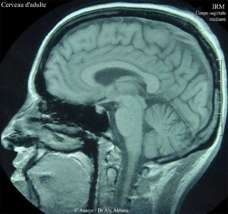 Série animée de coupes sagittales en IRM (AAHscout) montrant l'ensemble du cerveau normal chez une femme âgée de 26 ans