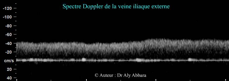 - La pulsatilité des parois de l'artère iliaque externe avec le flux sanguin discontinu (positif au cours de la systole, puis en partie nul et négatif durant la diastole), donnent un aspect saccadé à cette artère lors de l’acquisition du Doppler couleur en 3D.