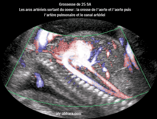 Echographie associée au Doppler Dynamic Flow montrant le cur ftal à 25 SA :