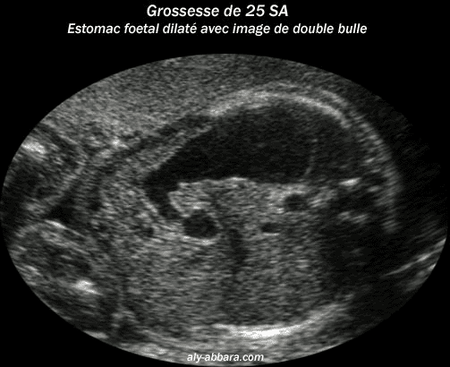 Grossesse de 25 semaines d'aménorrhée avec la mise en évidence d'un estomac dilaté et image de double bulle