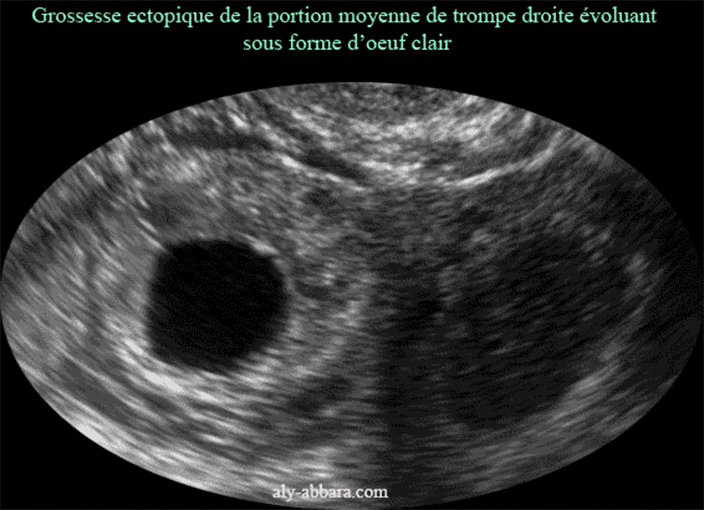 Le cas apporté dans cette page montre que l'œuf clair peut apparaître au cours de l'évolution d'une grossesse normalement implantée dans la cavité utérine, et aussi au cours de l'évolution d'une grossesse ectopique.