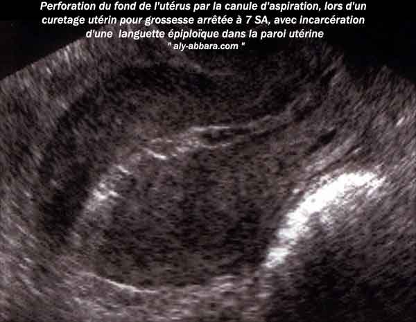 Image échographique d'une perforation utérine au niveau du fond utérin