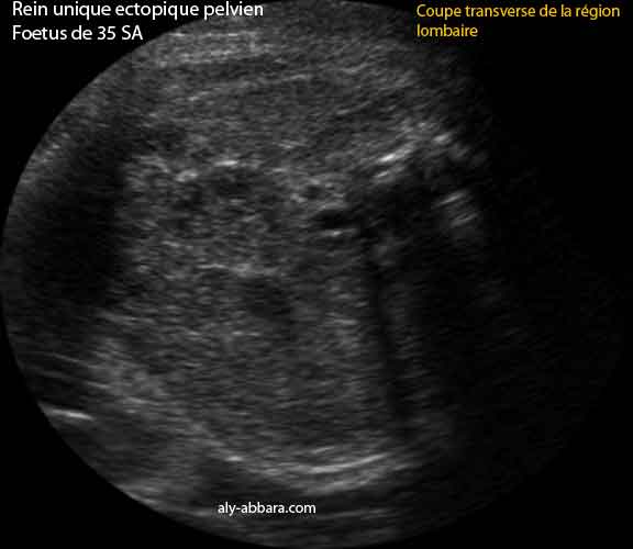 Rein unique ectopique pelvien ou agénésie rénale unilatérale avec ectopie Fœtus âgé de 35 SA |