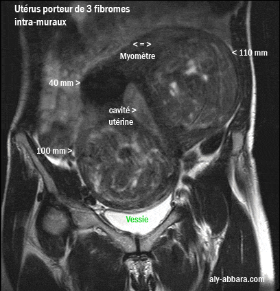 porteur de 3 myomes intra-muraux de 110, 100 et 40 mm de grand axe
