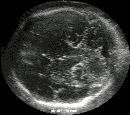 Coupe coronale au niveau du crâne ftal à 31 SA mettant en évidence le cervelet