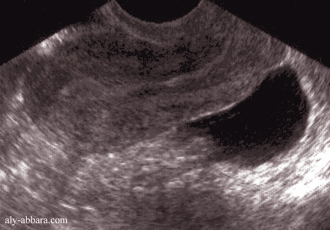Cul-de-sac postétrieur (de Douglas) mis en évidence par la présence d'un épanchement