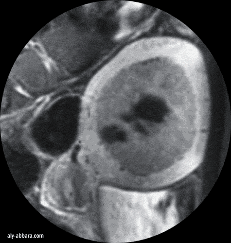 à l'origine de multiple foyers kystiques au sein du fibrome