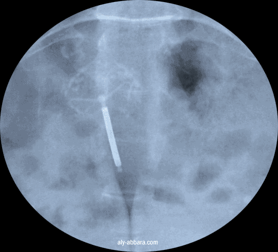 Fibrome utérin (myome) sous séreux calcifié et un stérilet au cuivre
