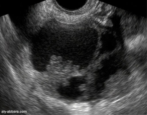 Il s'agit d'une tumeur ovarienne multicloisonnée