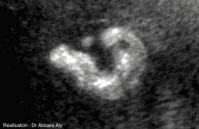 Pavillon de l'oreille externe - foetus de 36,5 SA - Imagerie vidéo récente Coupe frontale passant par l'oreille externe comparaison entre pavillon normal et pavillon d'un foetus atteint de la trisomie 18