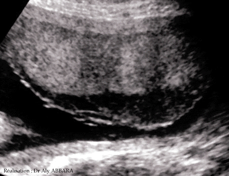 Hématome de la face fœtale du placenta à 27 semaines d'aménorrhée