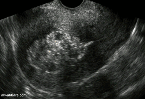Rétension trophoblastique dans l'utérus ou polype placentaire Cette image de 58 x 37 mm, hétéro-échogène qui occupe la totalité de la cavité utérine, elle a été mise en évidence deux mois après un accouchement naturel