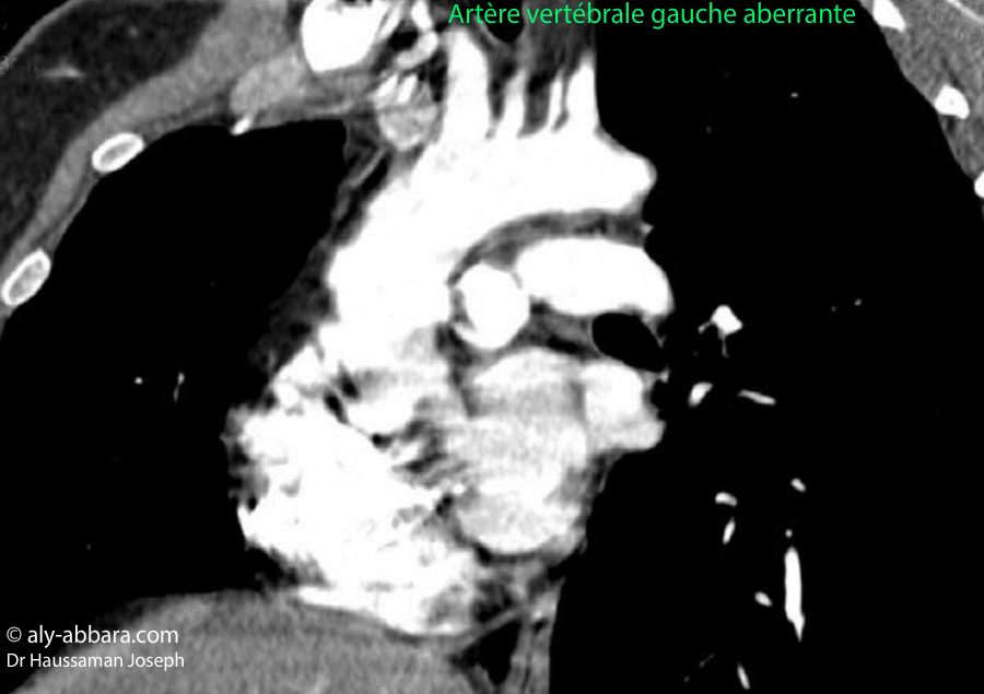- Donc chez cette personne, l'artère vertébrale gauche est aberrante parce qu'elle naît directement de l'arc aortique au lieu de naître de l'artère subclavière gauche.
