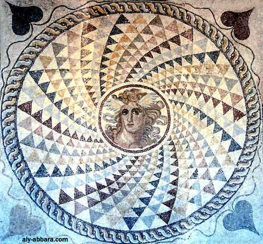av. J.-C.) ; dans le tympan du temple fut fixée une géante tête de Méduse, haute de 2,5 mètres, avec les terrifiantes défenses saillantes et la langue sortant de la bouche ; elle était censée protéger Selinonte et frapper de terreur ses ennemis. Puis les marins Grecs décoraient leurs navires par des figures représentant Méduse pour leurs garantir un voyage tranquille et un retour assuré.