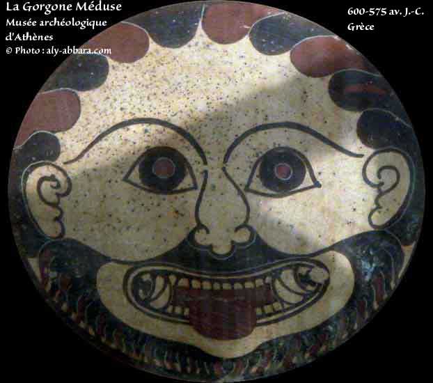 Collection de 6 images montrant la Gorgone Méduse avec ses dents comme les défenses