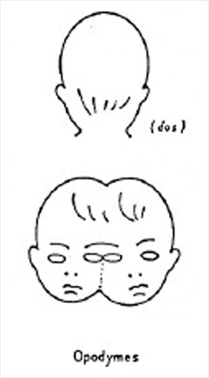Monstre double opodyme Image extraite de : A. Morin, Professeur au laboratoire d'Anatomie - Université Cl. Bernard - Lyon. " Histoire des monstres doubles ". Paleobios, 1987, Vol 3, N°1, pp 21-48 / Lyon - France SSN 0294-121 X.