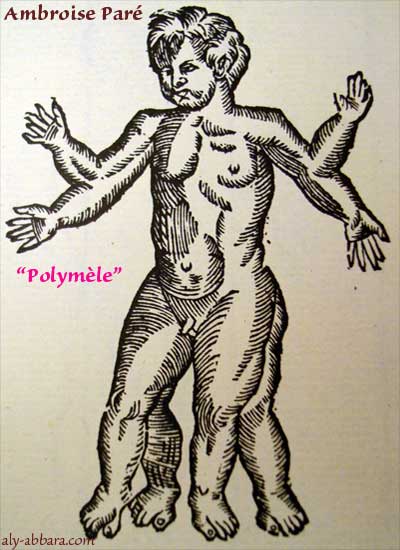 Gravure extraite du livre " Des monstres et prodiges " du chirurgien célèbre Ambroise Paré (vers 15091, 1518 - 1590) - Chirurgien du roi.