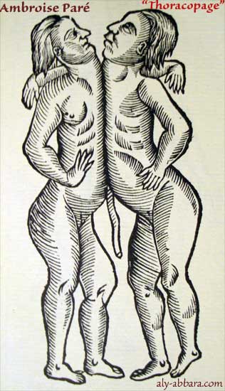 Gravure extraite du livre " Des monstres et prodiges " du chirurgien célèbre Ambroise Paré (vers 15091, 1518 - 1590) - Chirurgien du roi.
