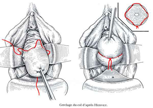 Le cerclage du col utérin thérapeutique, urgent (à chaud) :