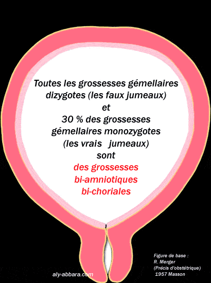 deux cavités ovulaires (deux amnios en dehos et deux chorions