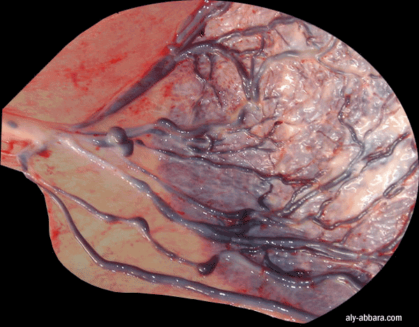 Face ftale d'un placenta (vue partielle)