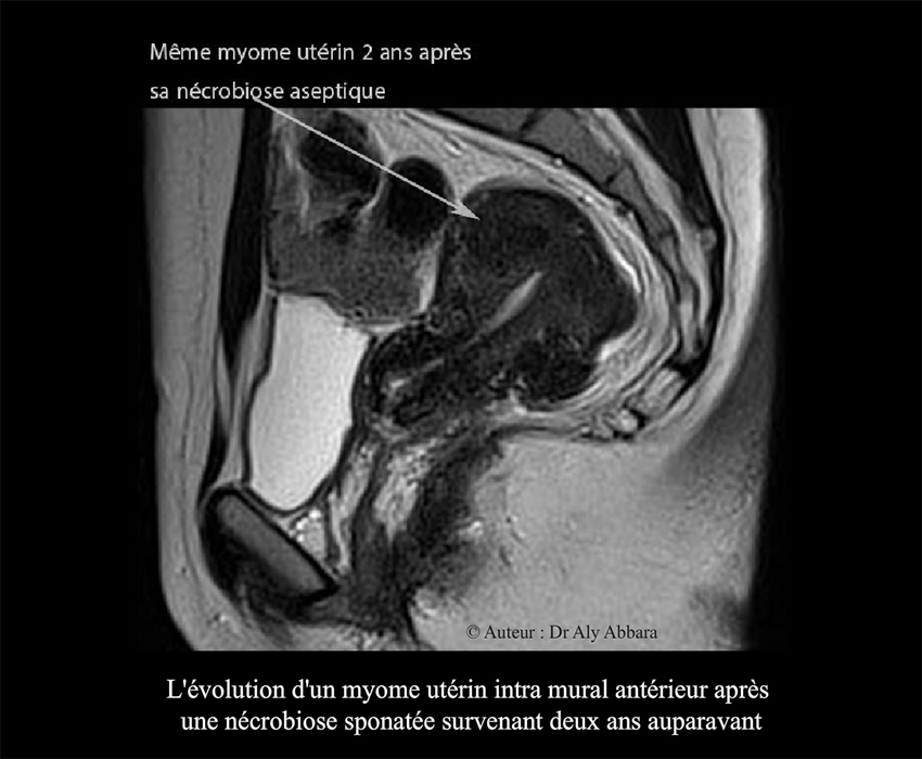 Série d'images IRM montrant l'involution d'un myome utérin intra-mural