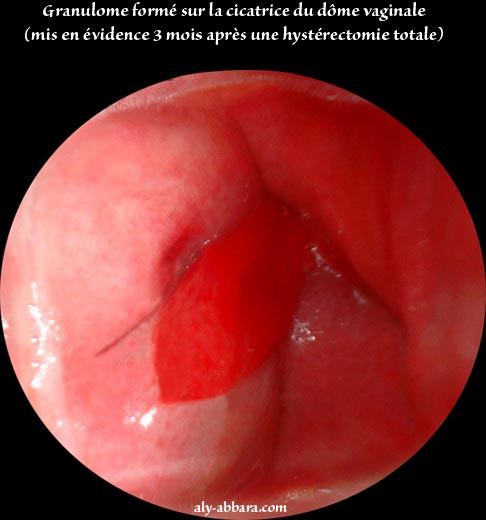 C'est une réaction inflammatoire aux particules du talc des gants chirurgicaux ou aux fils des sutures chirurgicales. Le diagnostic se fait soit fortuitement, lors de la consultation post-opératoire de routine, soit lors de l'examen gynécologique pour des saignements génitaux lors des rapports sexuels.