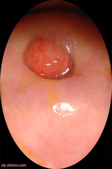 Polype endocervical bénin sessile accouché par l'orifice externe du col utérin A comparer au polype pédiculé