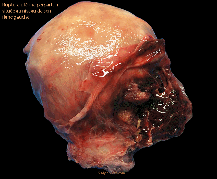 Ce type de rupture utérine siège parfois sur la cicatrice de césarienne antérieure, mais peut aussi avoir une localisation latéroutérine, peut-être à partir d’une zone de faiblesse en regard d’un angle de la cicatrice antérieure de césarienne, et est d’autant plus grave qu’elle intéresse des pédicules vasculaires importants (artère utérine et/ou pédicules cervico-vaginaux).