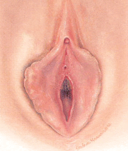 Vulve - vestibulite vulvaire - localisation de la zone douloureuse (إلتهاب الدهليز ـ توضع المنطقة المؤلمة) (Vulva, pudendum, الفَرْج) ![]() Consulter : vue latérale Image animée montrant ses différents éléments anatomiques