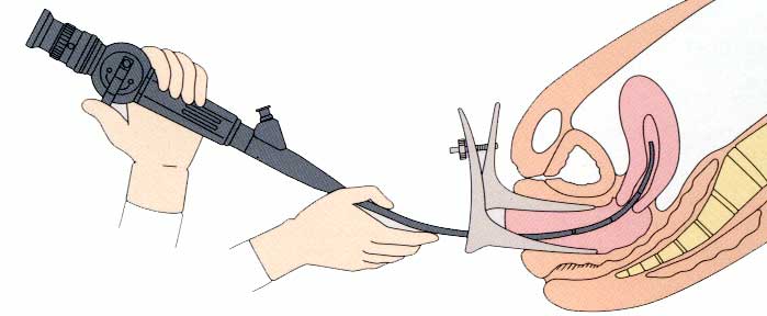 Hystéroscope souple (technique d'introduction dans la cavité utérine) :