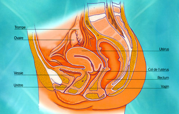 Anatomie féminine (en coupe sagittale "antéro-postérieure) :