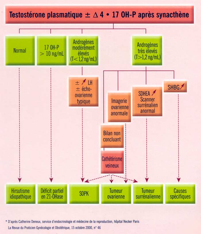 Arbre décisionnel de diagnostic en cas d'hirsutisme et virilisme