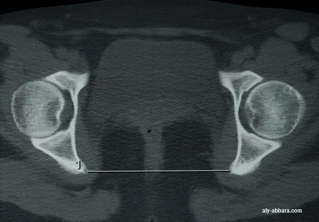La scanopelvimétrie (Scanopelvimétrie) " le détroit moyen et le diamètre bi-épineux ou bi-sciatique " Diamètre bisciatique