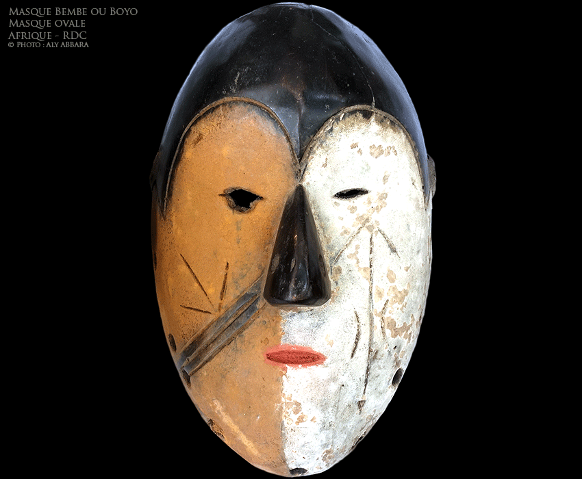 - Masque polychrome : noir, blanc kaolin, ocre brun et rouge.