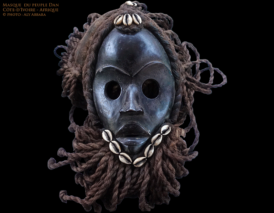 • Les masques chez les Dan sont les esprits (bon) envoyés par leur dieu " Zlan " ou des forces spirituelles tutélaires appelées (du) ou (gle = êtres énigmatiques) qui habitent la forêt et souhaitent de participer à la vie dans la société des hommes, et également à leurs activités et aux décisions à adopter. Ils sont également les ancêtres ; ils proviennent de leur monde afin de faire partie du monde des vivants.