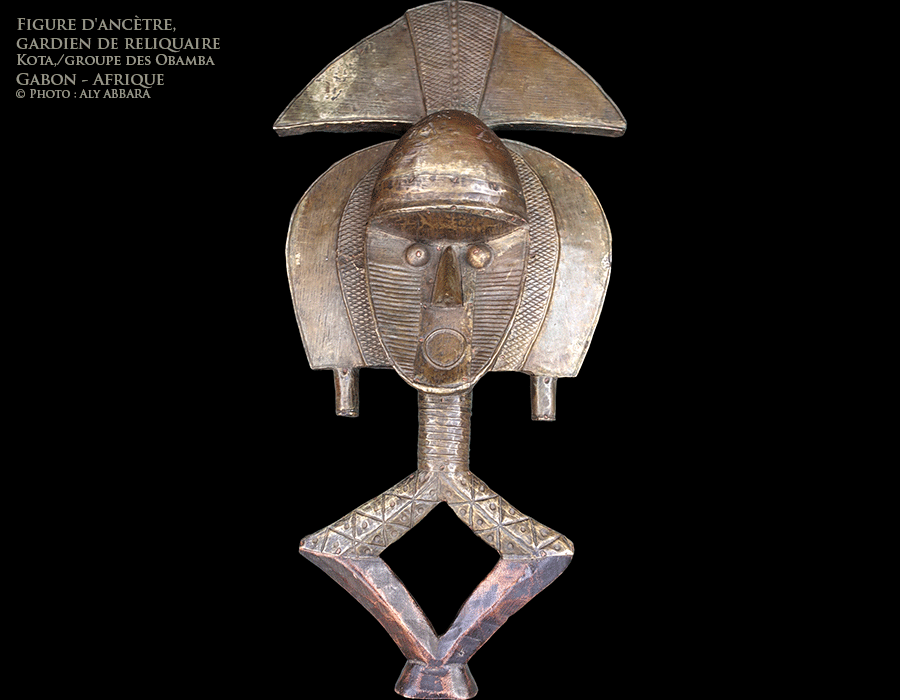 - Dans la majorité des statues de reliquaire le corps qui se trouve en dessous du cou se divise en deux branches qui se rejoignent plus bas après avoir limité un losange se trouvant dans le même plan du visage ; ces deux branches servent comme poignée ou bras facilitant le déplacement de l'ensemble statue-reliquaire.