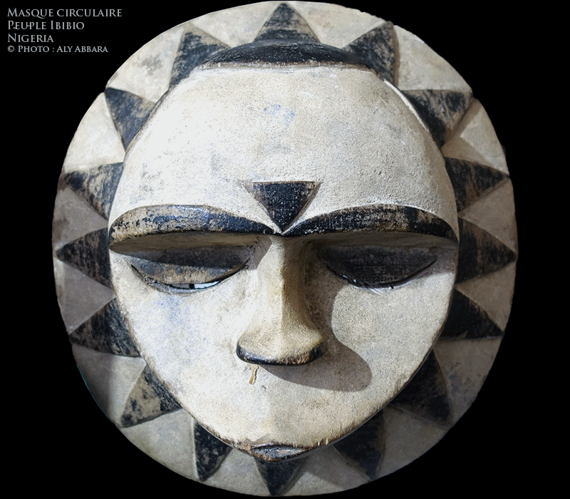 - Masque circulaire, lunaire caractérisé par la présence d'un visage sculpté au centre d'un disque ; ce visage est divisé selon une ligne horizontale en deux moitiés presque égales, supérieure et inférieure.
