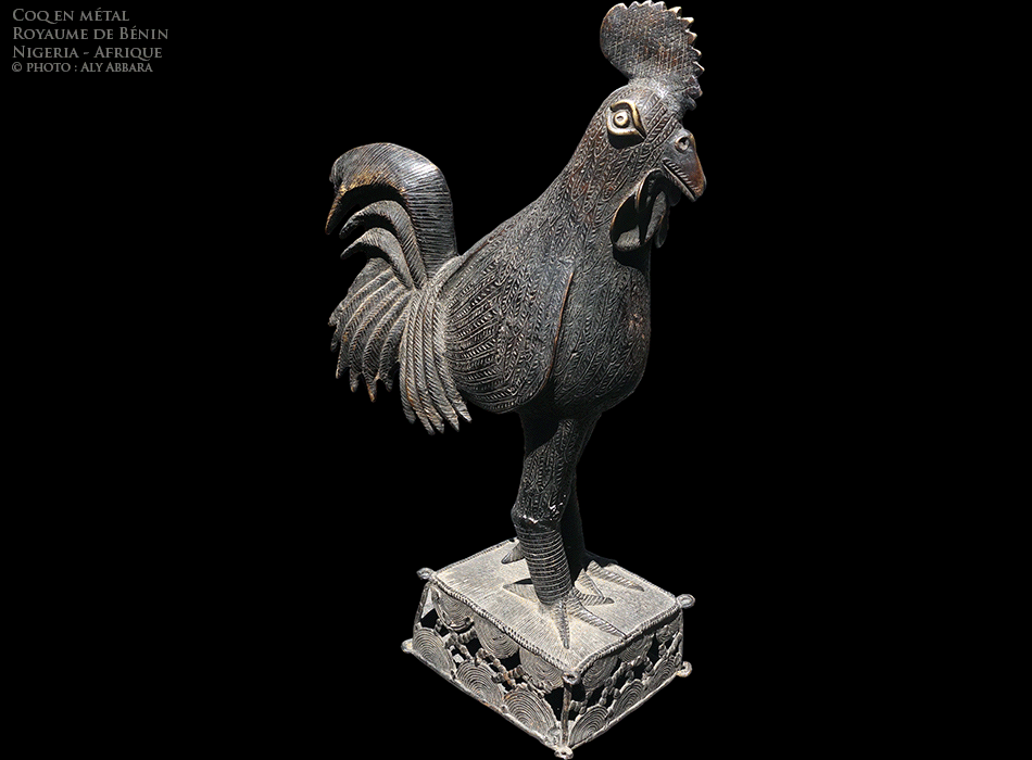 Art africain - Statue animalière (coq) en bronze du Royaume Edo du Bénin - Culture de Bini (Bénin) - Nigeria
