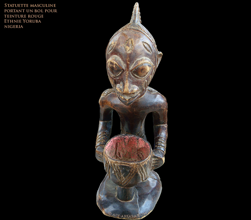 Statuette masculine - Yoruba agenouillé portant un bol pour teinture rouge