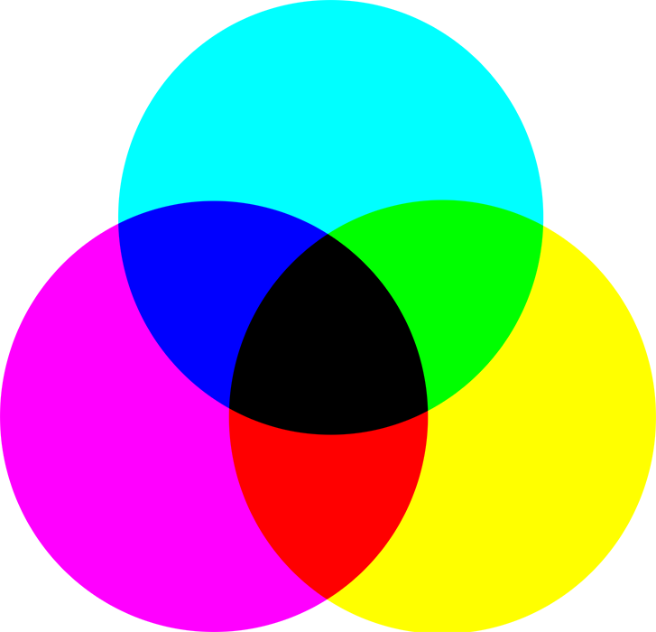 > Donc en dirigeant un rayon de lumière de couleur blanche (rouge + vert + bleu) sur trois filtres superposés l'un de couleur jaune, l'autre magenta et le 3ème cyan, aucun rayon lumineux ne peut sortir de l'autre côté ce complexe de filtres, car le rayon rouge sera absorbé par le filtre cyan, et le rayon vert sera absorbé par le filtre magenta et rayon bleu sera résorbé par le filtre jaune.