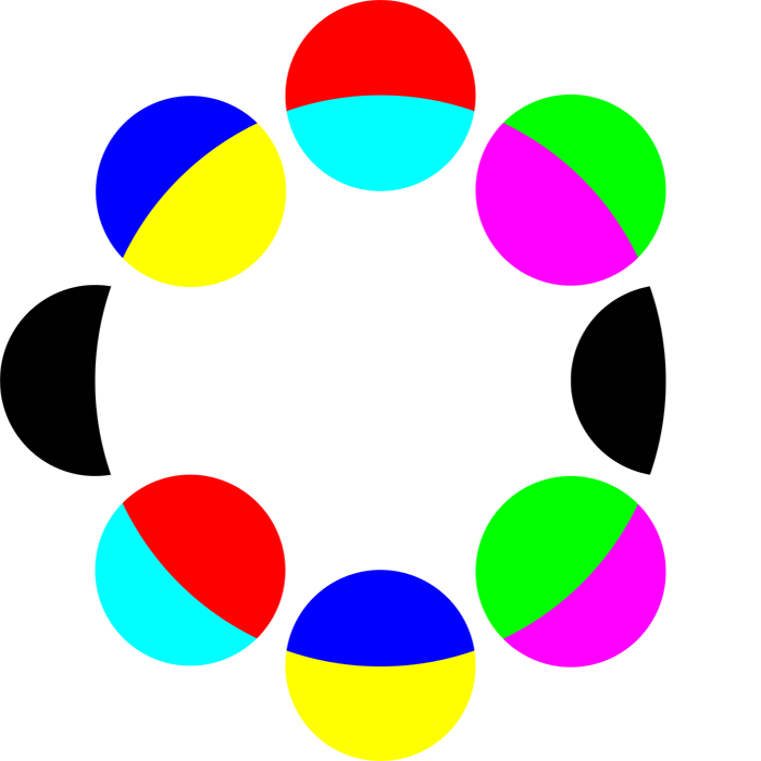 Les explications se retrouvent dans le code hexadécimal de chaque couleur avec la synthèse soustractive de ces codes :