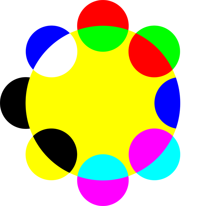 Comportement soustractif du jaune (par exclusion) ; il s'agit d'une couleur